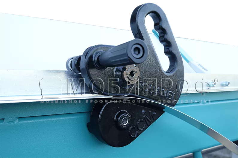 Роликовый нож, пневмокомпенсатор прижимной балки, ограничитель угла поворота гибочной балки, ограничитель высоты подъема прижимной балки, педаль.